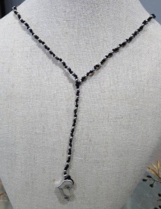 ロウ引きのコットンにパーツが連なるネックレスです。
