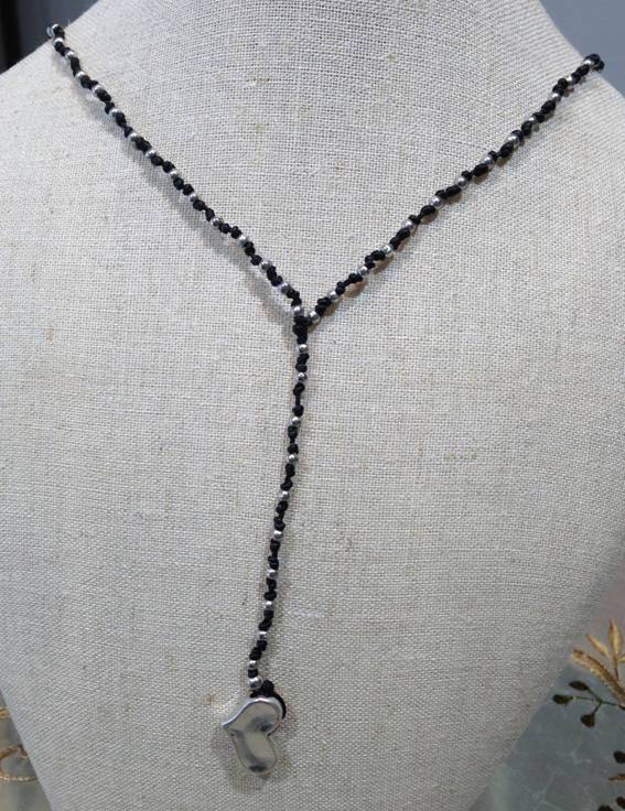 ハートのネックレス(ロザリオタイプ)ブラック(VE-Cod.2053 nero)